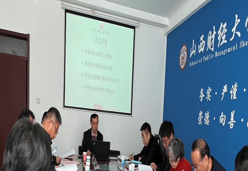 会议第一阶段,评估专家对公共管理学一级学科进行评估。学院副院长冯小俊从学科概况、师资队伍、科研情况、人才培养、服务贡献、存在问题与改进措施等方面,对公共管理学学位授权点基本情况进行了详细汇报。专家组听取了汇报,审阅了相关报告和资料,并就相关问题进行了质询,并针对性地提出公共管理学学位点应进一步凝练学科发展方向,培养过程要充分体现财经类高校特色,适应人工智能背景下的教育创新等建议。经过综合评估,专家组一致同意我校公共管理学学位授权点周期性评估自评估顺利通过。