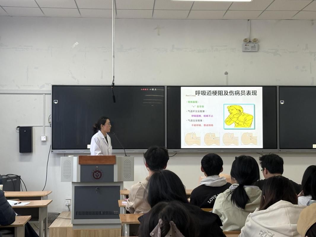 为提升大学生急救素养,强化突发疾病识别与救护能力,切实守护师生生命健康,3月17日,我院联合校医院、博雅学院,开展了以“大学生常见突发疾病识别与应急处置”为主题的专题讲座。本次讲座邀请校医院医师王洁主讲,学院副书记郝志鹏主持,学院2025级200名学生积极参与,学习氛围浓厚。