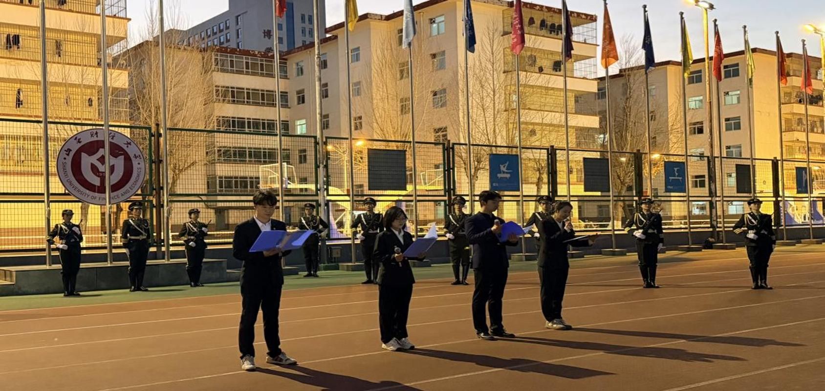 晨光初绽,红旗飘扬。12月8日清晨,我院于坞城校区操场隆重举行升旗仪式。学院领导、全体辅导员及在校生共同参与,仪式由2023级劳动与社会保障班武悦同学主持。