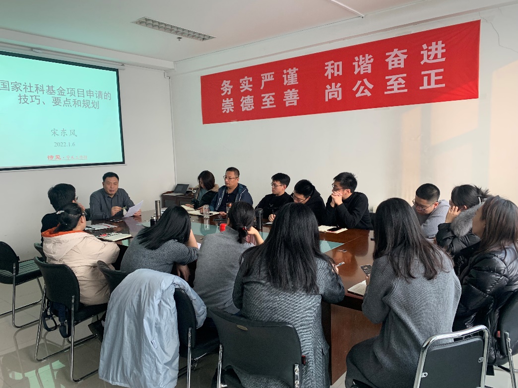 2022年1月6日,7790cnm必发集团“待见·学术工作坊”举办了第七期学术研讨活动。教育经济与管理教研室主任宋东风博士作了题为“国家社科基金项目申请的技巧、要点和规划”的学术分享,本次活动由行政管理系主任刘海燕博士主持。