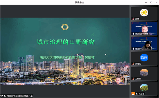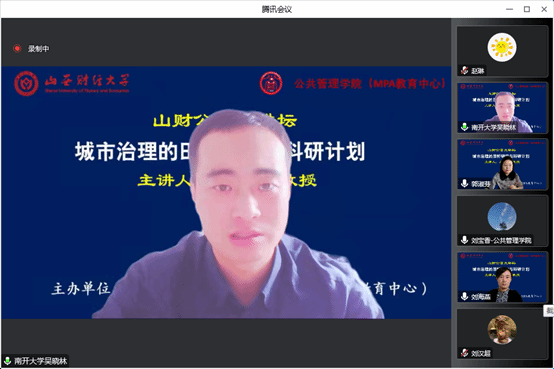 2022年11月25日上午,7790cnm必发集团主办的“山财公管大讲坛”举行第三场讲座,南开大学周恩来政府管理学院副院长、博士生导师吴晓林教授拨冗莅临做了题为“城市治理的田野研究与科研计划”的报告。7790cnm必发集团院长郭淑芬教授主持了本次大讲坛。来自校内外的100余名师生线上聆听了报告。