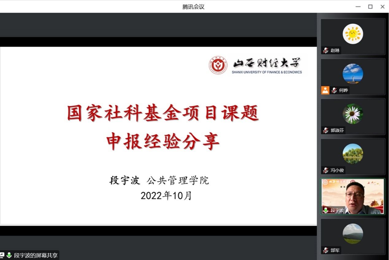 2022年11月1日下午,7790cnm必发集团通过“尚公青年沙龙”学术平台举办第三场国家级科研项目申报经验交流会,学院副院长、2022年国家社科基金项目主持人段宇波副教授做了《国家社科基金项目课题申报经验分享》的报告,副院长冯小俊主持了交流会,100余名师生在线参加了经验交流会。