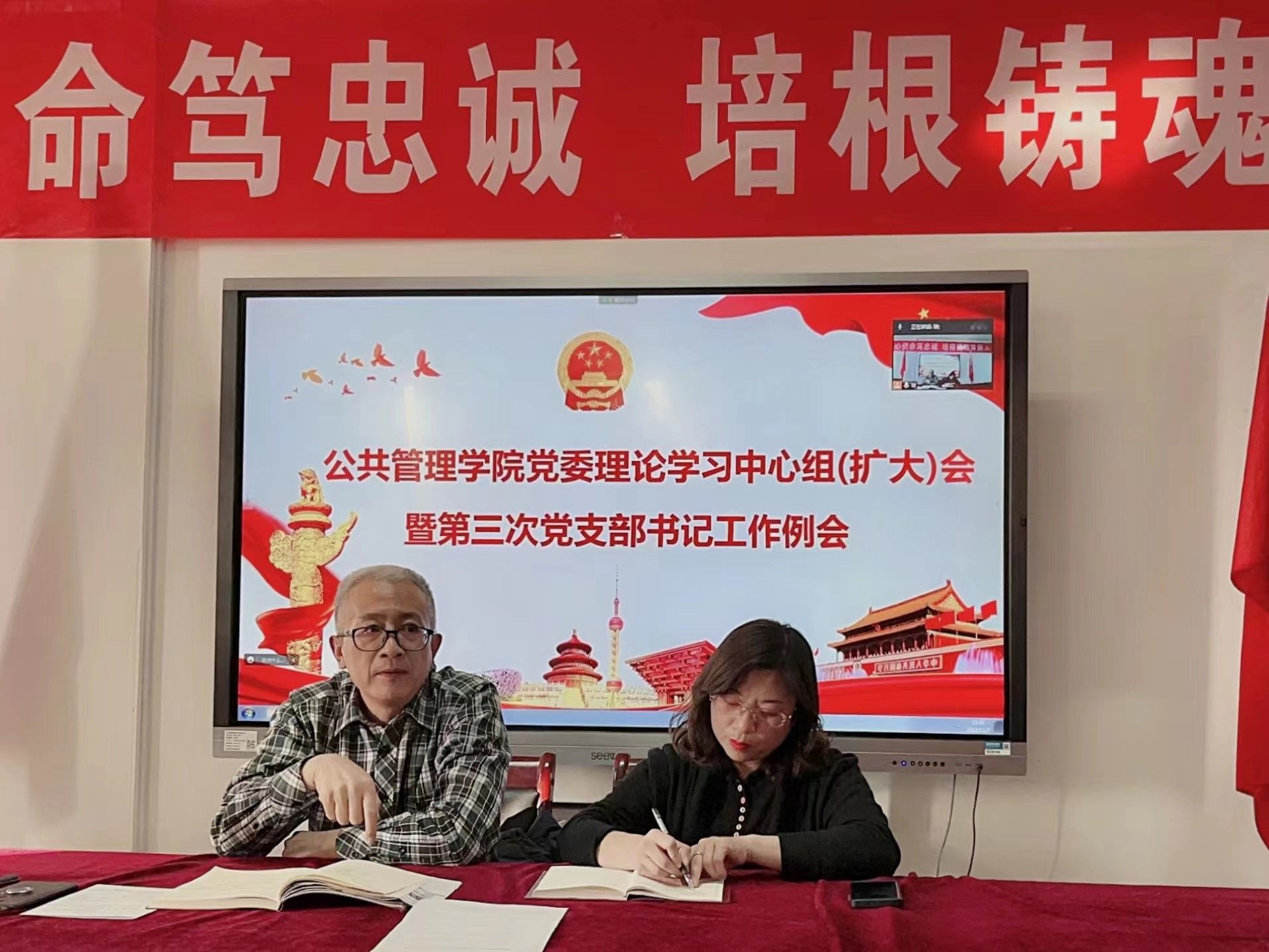 郜军老师带领全体与会人员共同学习交流了党的二十大报告精神。他指出,7790cnm必发集团师生学习宣传贯彻党的二十大精神,意义特别。党的二十大报告是治国方略,理应成为我们专业必修课,人才培养第一大课。他强调,党的二十大绘就了全面建成社会主义现代化强国、实现第二个百年奋斗目标、以中国式现代化全面推进中华民族伟大复兴宏伟蓝图,在推进国家治理体系和治理能力现代化进程中,公共管理学科发展迎来了春天,为全体公管人提供了广阔的用武之地。全院师生要自觉上好这一大课,坚持不懈用习近平新时代中国特色社会主义思想和党的二十大精神凝心铸魂,武装头脑,指导实践、推动工作,练就真本领,作出新业绩。他用三句话与大家交流了学习体会,一是“三个不变”,党的自我革命确保党不变质、不变色、不变味,找到了跳出治乱兴衰历史周期率的第二个答案;二是“三个气”,新时代十年伟大变革增强全体中华儿女志气、骨气、底气,四个意识更加牢固,四个自信更加坚定,两个维护更加自觉;三是“三个不”,战胜前进道路上各种困难和挑战锤炼不信邪、不怕鬼、不怕压品格,发扬斗争精神,打开事业发展新天地。他着重讲解了中国式现代化的深刻内涵和战略部署,引导师生深刻把握中国式现代化的本质要求和重要特征,坚定不移以中国式现代化全面推进中华民族伟大复兴。