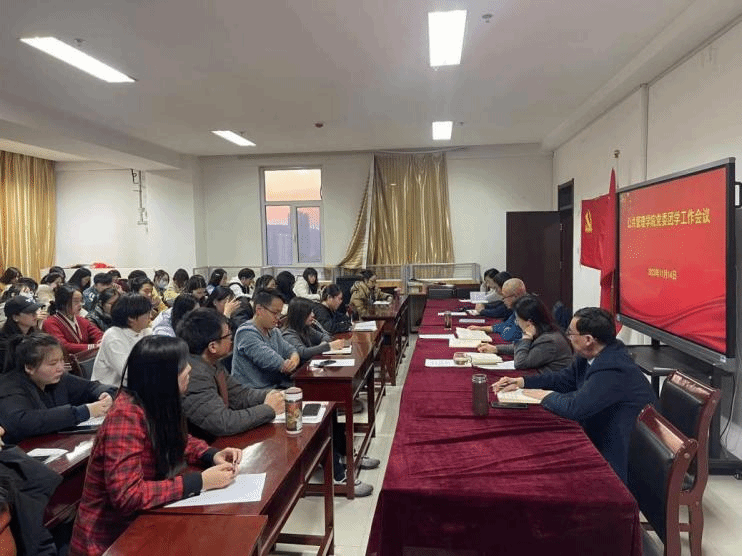 近日,我院党委在博学楼1023室召开团学工作会议,分析研究新形势下学院团学工作,贯彻落实党委关于加强团学工作的意见,总结成功经验,解决突出问题,推动团学组织改革创新、增强活力,开创我院团学工作新局面。学院党委班子成员出席会议,学院办公室、团委、工会负责人,各党支部书记、教研室主任,全体辅导员,学生会骨干,各班团支部书记、班长和学习委员参加会议。会议由学院党委副书记、院长郭淑芬主持。