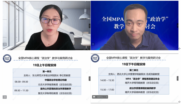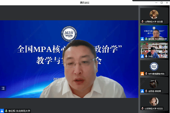 为学习贯彻落实党的二十大精神,进一步优化并改进MPA核心课程教学内容和方法,探讨学科最新研究动态,提升课堂教学效果,全国公共管理专业学位研究生教育指导委员会于11月19-20日举办了全国MPA核心课程“政治学”教学与案例研讨会。本次研讨会借助腾讯会议平台进行,全国近百家MPA培养单位、160余位任课教师参加。我院刘汉超、靳永广两位教师参会。