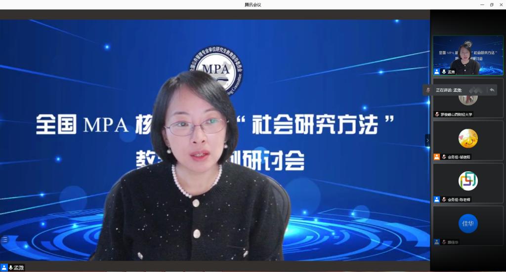 2021年1月16至17日,全国公共管理专业学位研究生教育指导委员会主办的MPA核心课程“社会研究方法”教学与案例研讨会在腾讯会议线上举行,来自不同高校、科研院所的240多位老师参加会议。我院罗俊峰、郎杰燕两名教师参加此次会议。